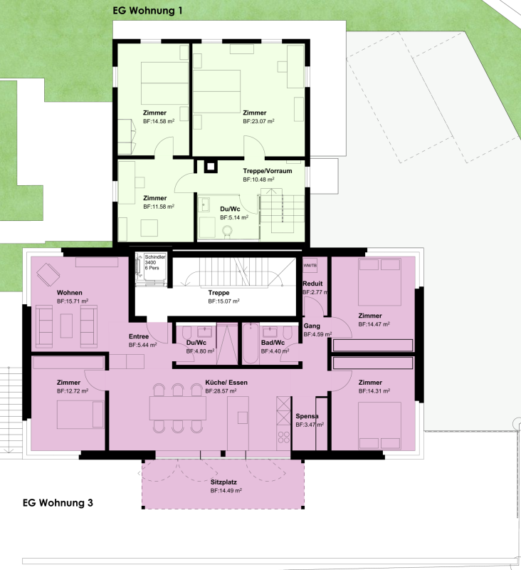 - Sitzplatz mit 14.5 m²